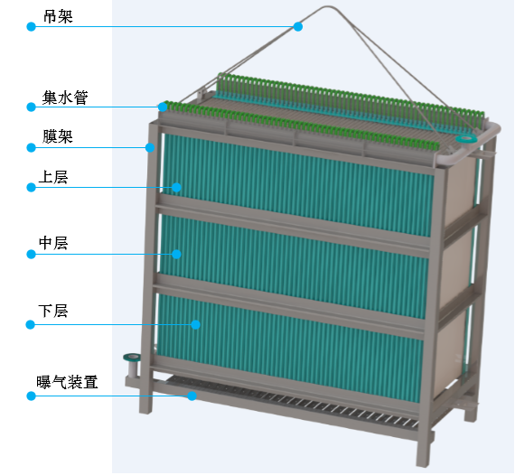 (9)膜組器的獨特結(jié)構(gòu)設(shè)計,充分強化了水力學(xué)循環(huán),提高水力對膜表面的擦洗 效率,同時提高氧氣的利用率;